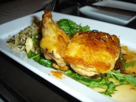 and fresh baby mint, arugula, baby vegetables, almond rice pilaf)